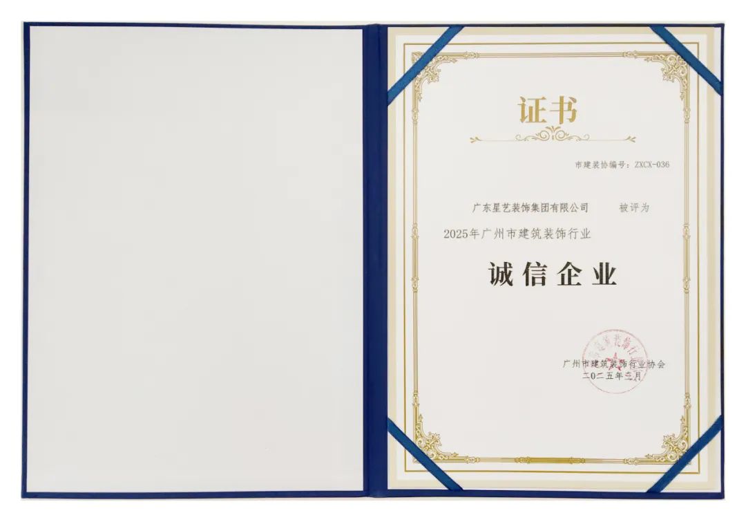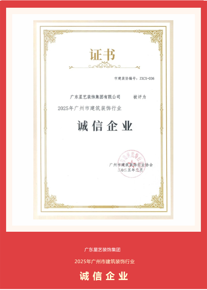 導(dǎo)讀:星藝裝飾榮膺“2025年廣州市建筑裝飾行業(yè)誠(chéng)信企業(yè)”榮譽(yù)稱號(hào)